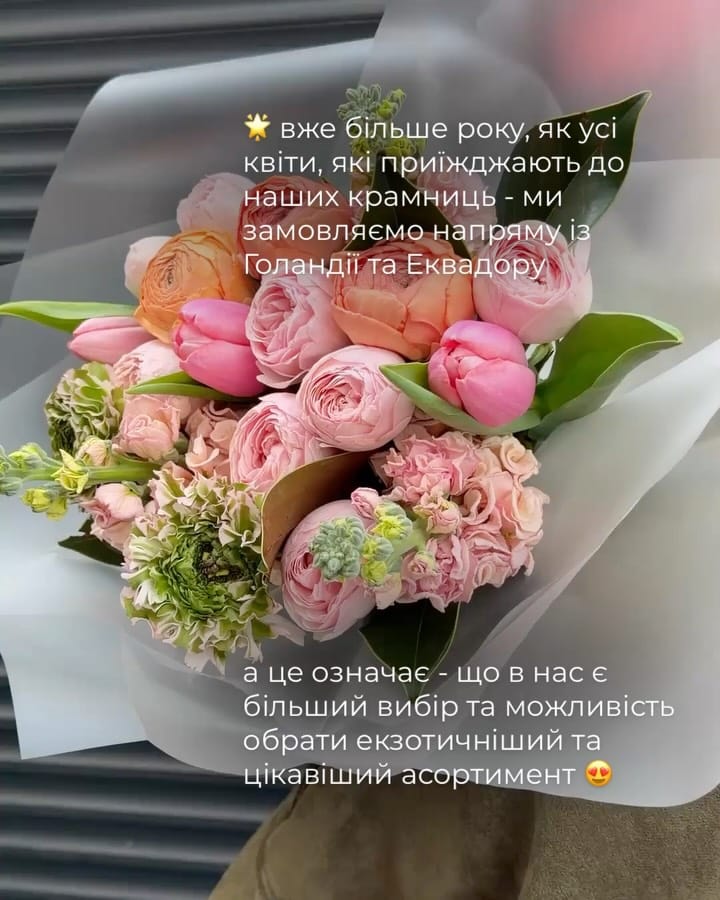 Використовуємо лише свіжі, відбірні квіти, які довго зберігають красу та свіжість.