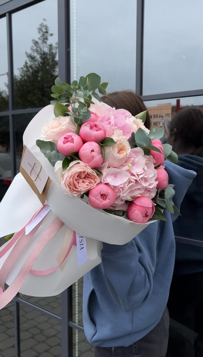 Букет «Даллас» — це про силу жіночності, м’яку рішучість та емоцію, що не залишає байдужим. Пишна гортензія, пелюсткова глибина півонії, класика троянди та освіжаючі нотки евкаліпту зібрані в гармонійну композицію, що ідеально поєднує стиль і душевність. Цей рожевий букет виглядає по-справжньому ефектно, але при цьому лишається делікатним. Він створений для моментів, які хочеться запам’ятати: побачення, річниці, подяки чи просто радісні «без причини». Замовте «Даллас» прямо зараз — скажіть важливе мовою квітів.