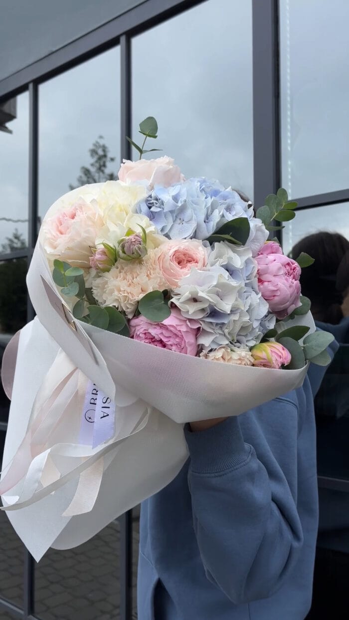 «Денвер» — ніжний букет з півоній, троянд і гортензії в мрійливих відтінках. Даруйте щирі емоції — замовляйте зараз!