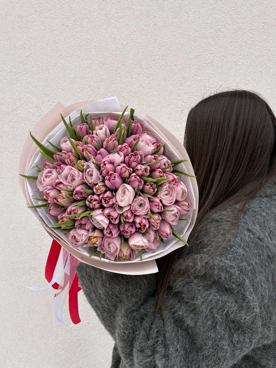 Розарія — букет із глибоким настроєм і внутрішньою тишею. Його насичений відтінок створює відчуття загадковості, спокою й зосередженості, ніби пауза серед буденних думок. Він виглядає виразно, але не гучно, підкреслюючи смак і чутливість до деталей. Розарія особливо добре звучить у холодні та перехідні сезони, додаючи простору глибини й емоційної рівноваги. Це вибір для тих, хто цінує атмосферу і зміст. Замовляйте Розарію в BRUSNYTSIA — щоб подарувати настрій, який відчувається.