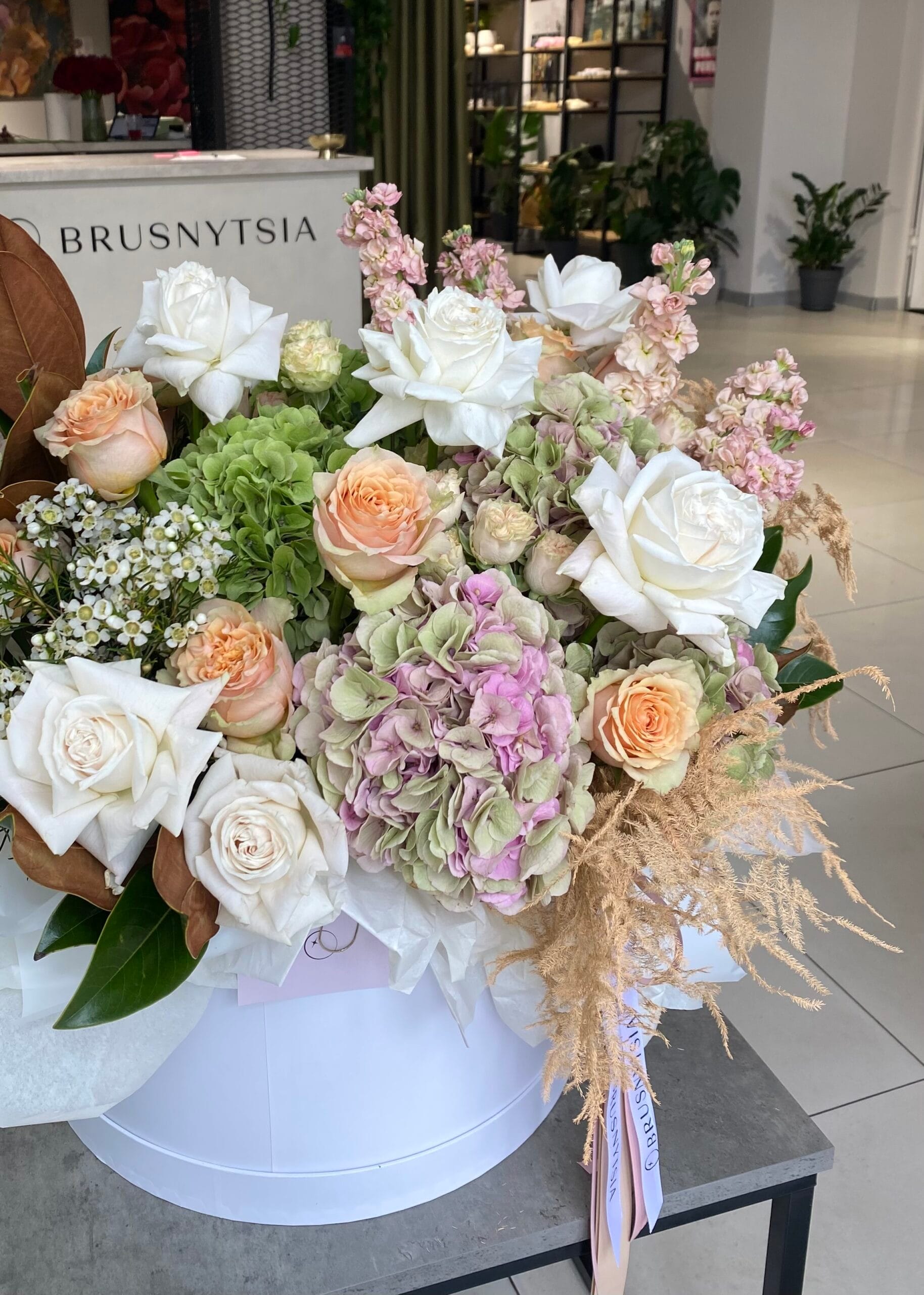 “Осака” — стильна квіткова коробка, що поєднує тепло, колір і витонченість. Замовляйте у “BRUSNYTSIA” просто зараз.