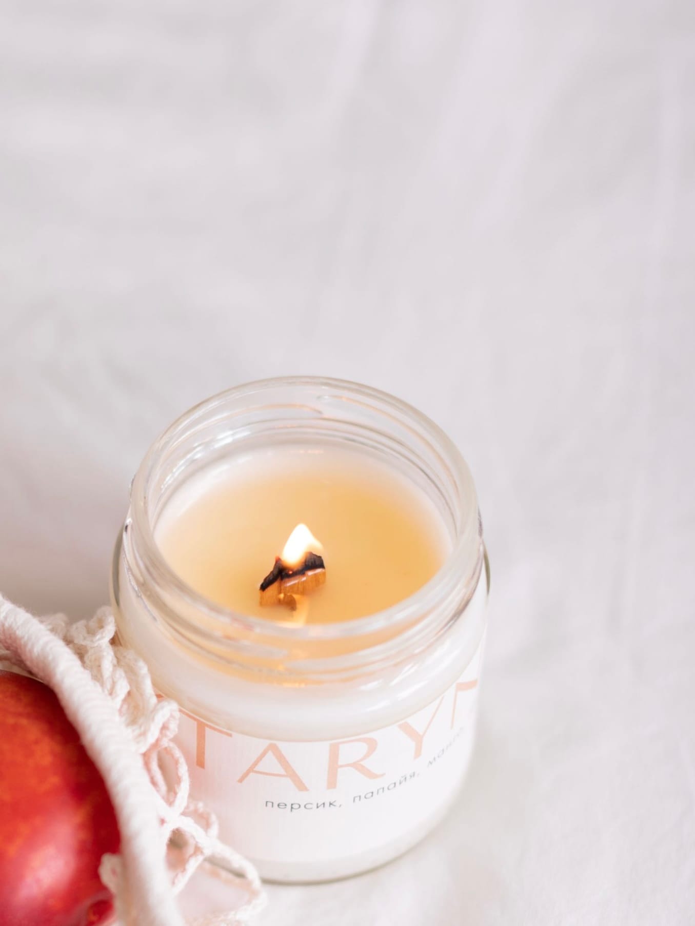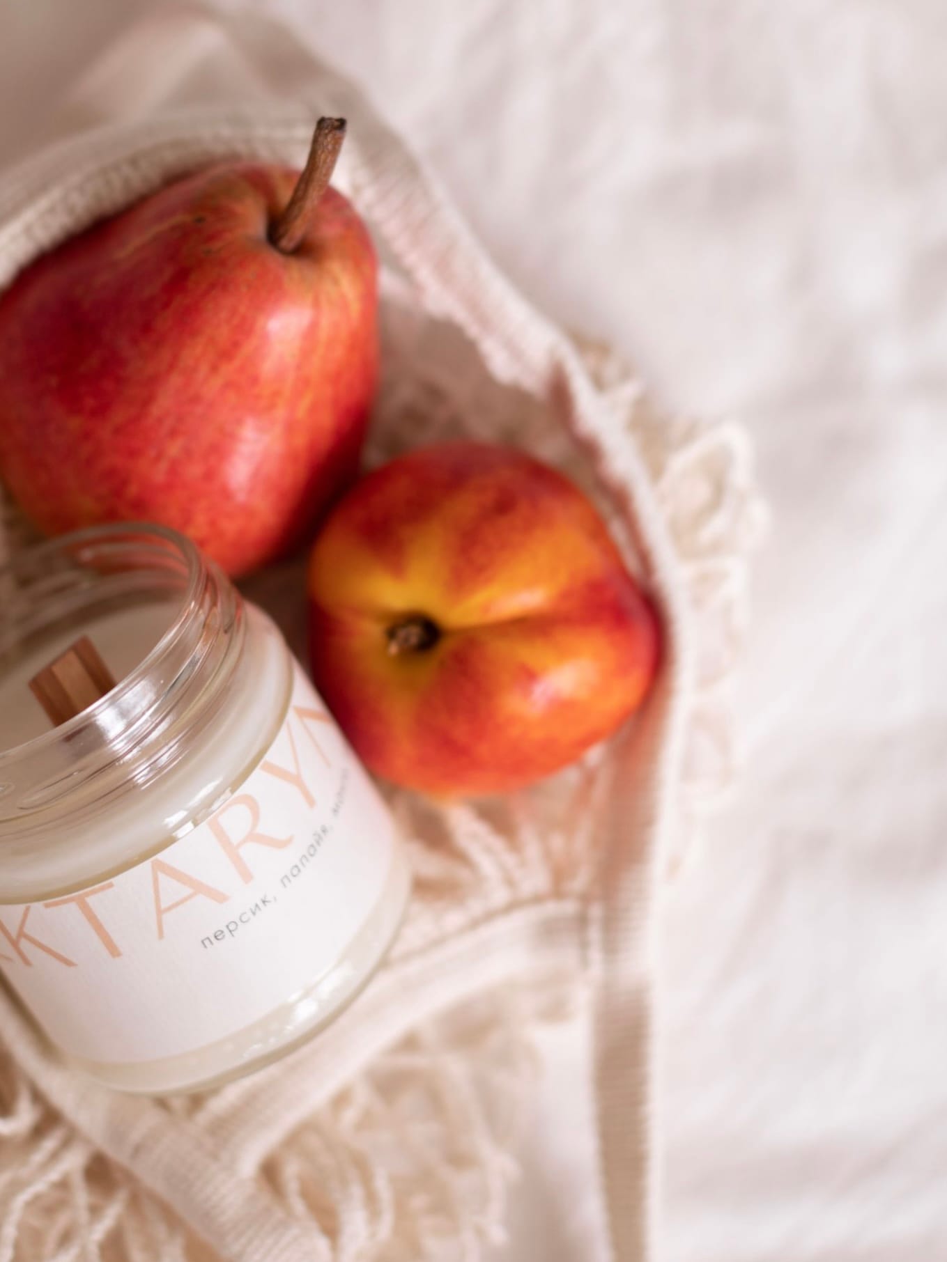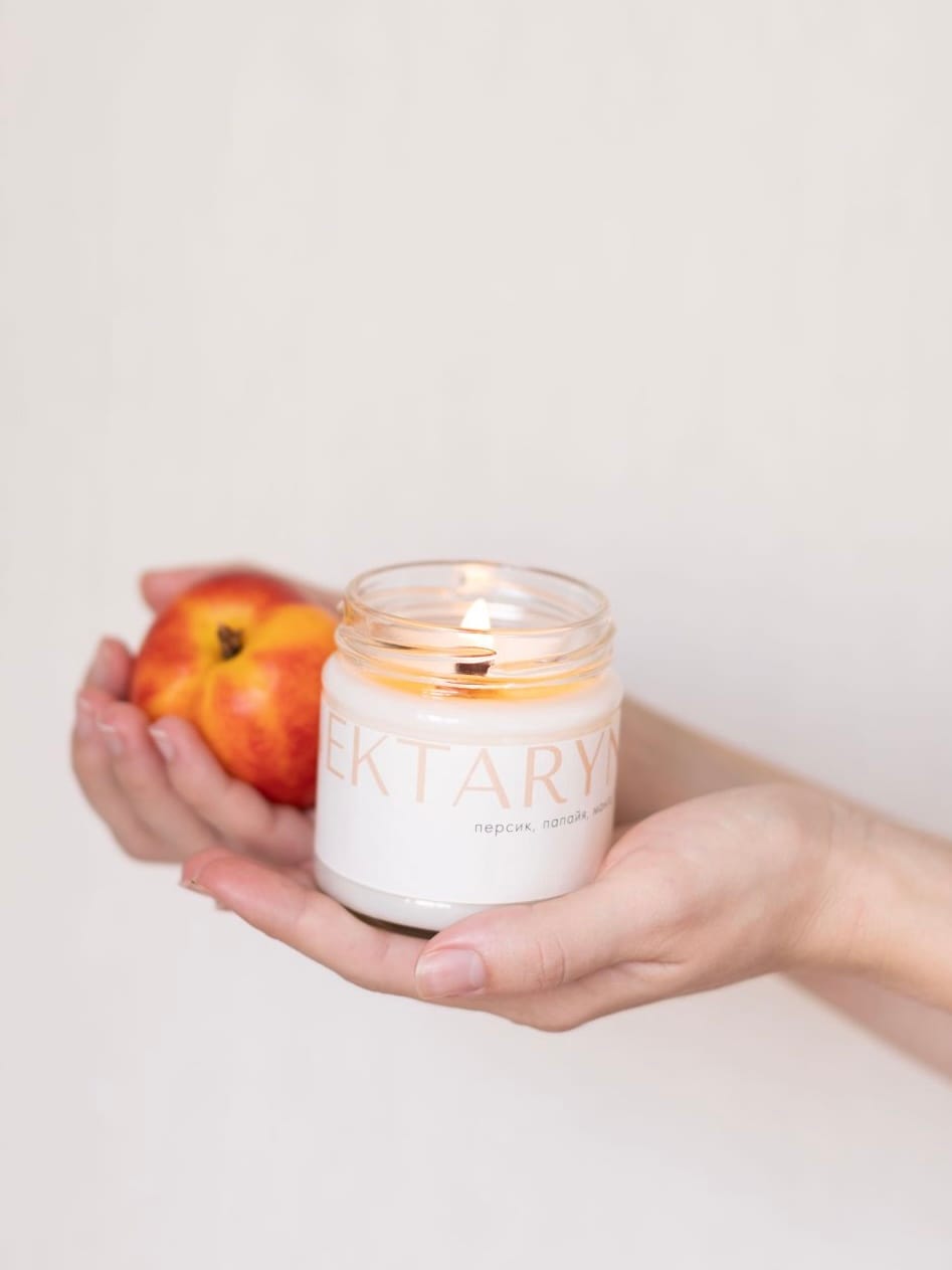 “NECTARYN” — це аромат, що вибухає літньою соковитістю ще до того, як свічка торкнеться вогню. У ньому відчувається справжній смак стиглих фермерських фруктів, наповнених сонцем і солодким соком. Яскравий старт лайма додає свіжості, а в середині розкривається апетитна композиція персика, манго, груші, папайї та зеленого листя — така ж багата, як ранковий кошик щойно зібраних плодів. Завершує аромат оксамитова база з нотами бобів тонка, що додає м’якості й тепла. Ця свічка створює атмосферу радості й сонячного комфорту, яку хочеться відчути знову і знову. Замовте “NECTARYN” у “BRUSNYTSIA” сьогодні — дозвольте дому наповнитися справжньою фруктовою насолодою.