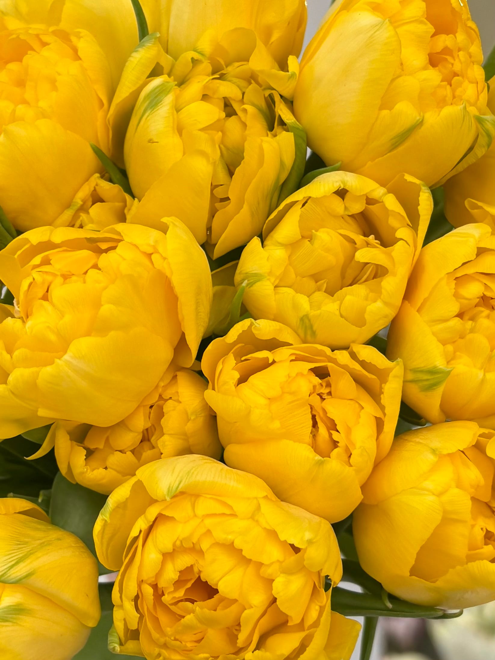 Оберіть глибину вражень та неперевершену ніжність з наших букетів із жовтих піоновидних тюльпанів. Цей сонячний колір створює атмосферу яскравості, привносячи у ваше свято неповторну красу. Оберіть свій власний букет із 25, 33, 51 або 101 тюльпана та даруйте найприємніші враження своїй близькій людині. Доставте мить любові жовтими піоновидними тюльпанами!